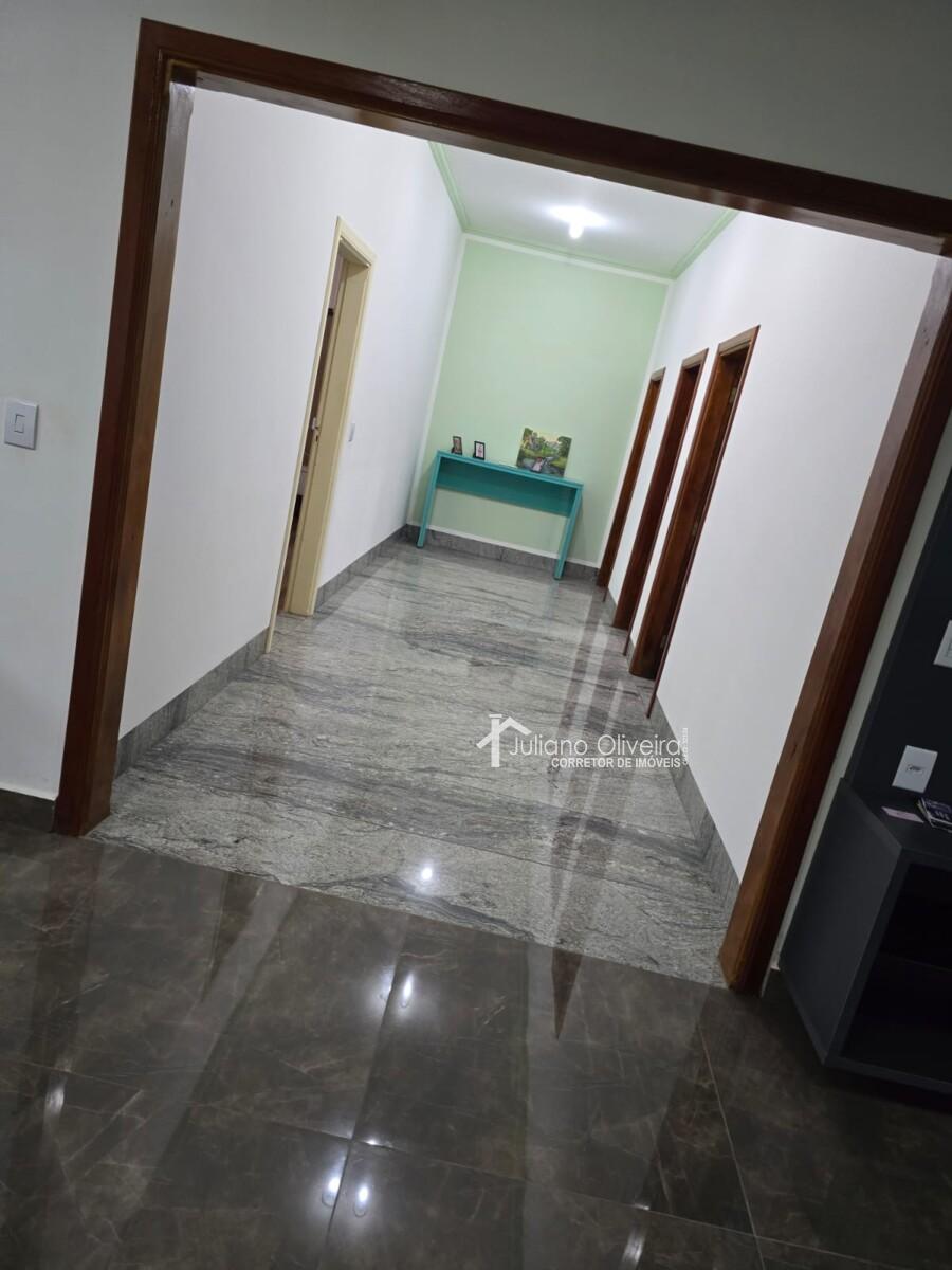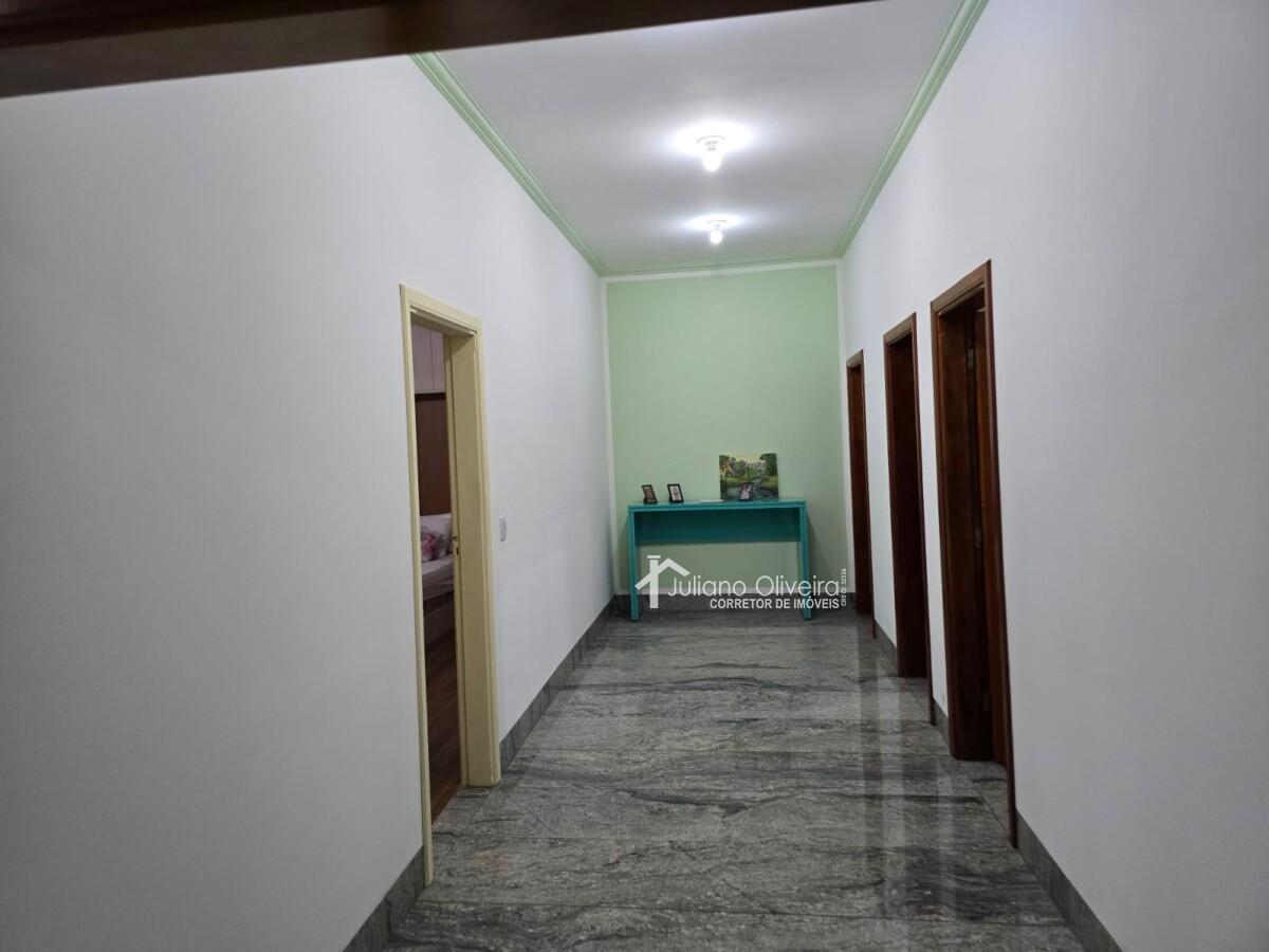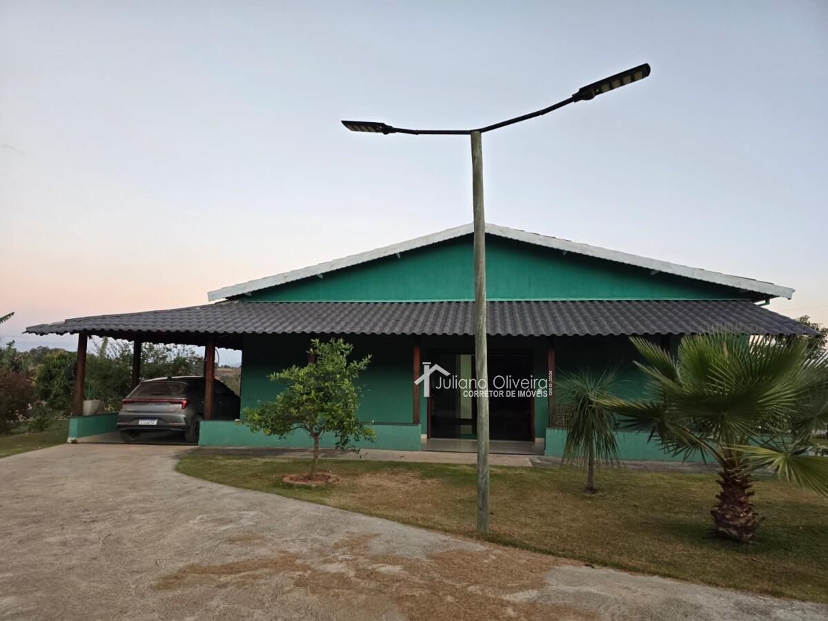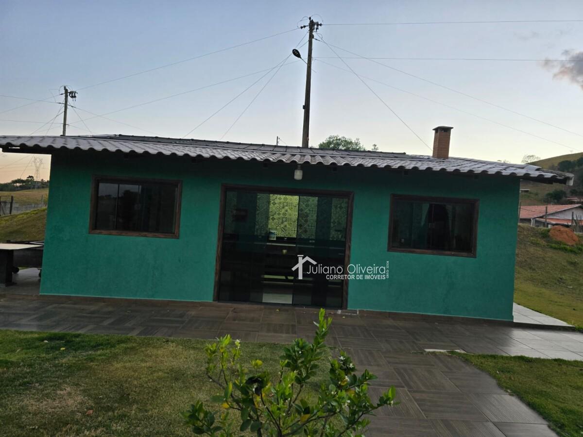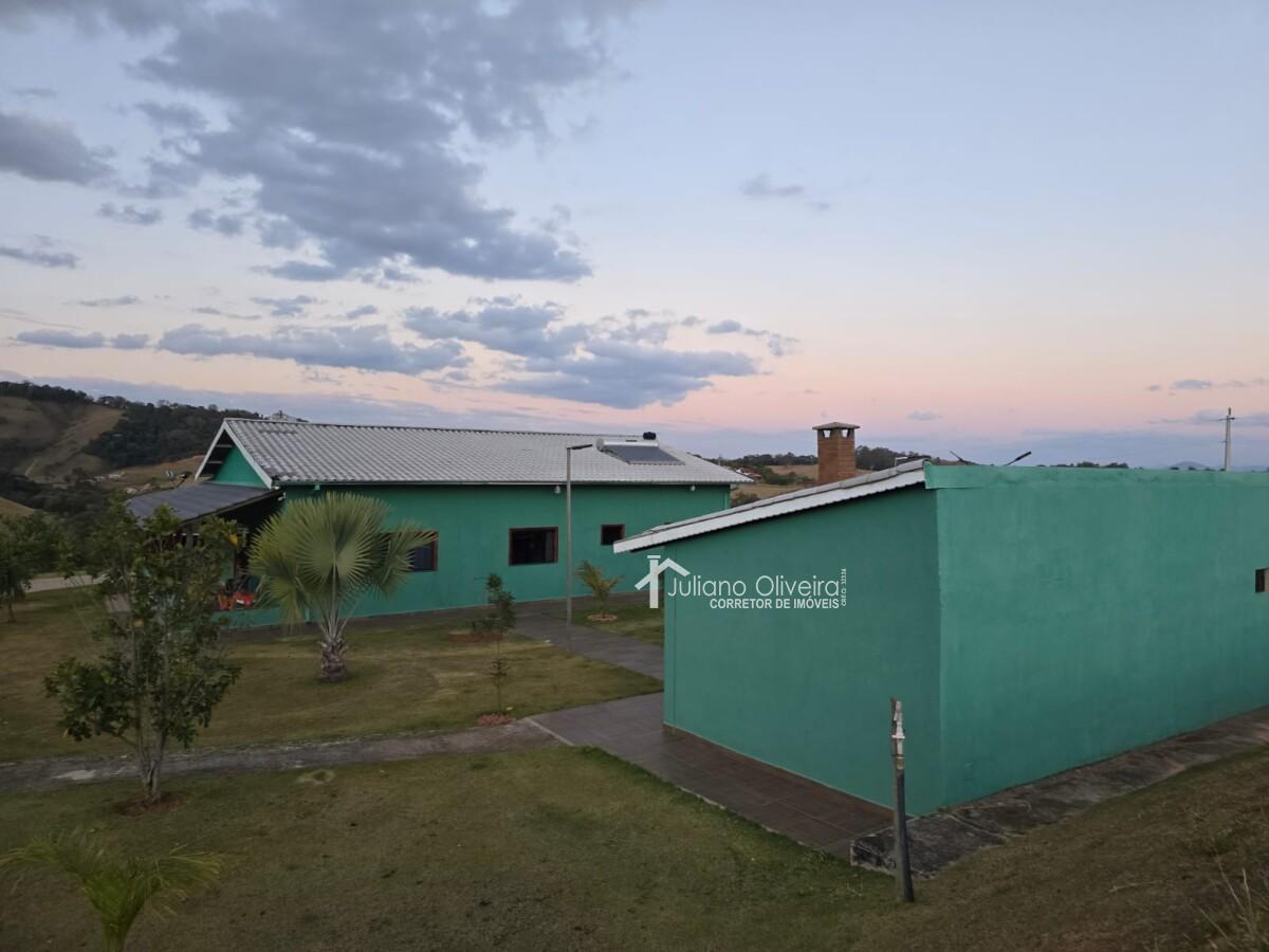 Chácara com 300m² de área construída sobre o terreno de 8000m², contendo: 3 quartos sendo 1 suíte com banheira de hidromassagem, sala de TV, banheiro social, cozinha, área de serviço, área gourmet separada da casa principal com churrasqueira, fogão à lenha, piscina e 3 vagas de garagem.