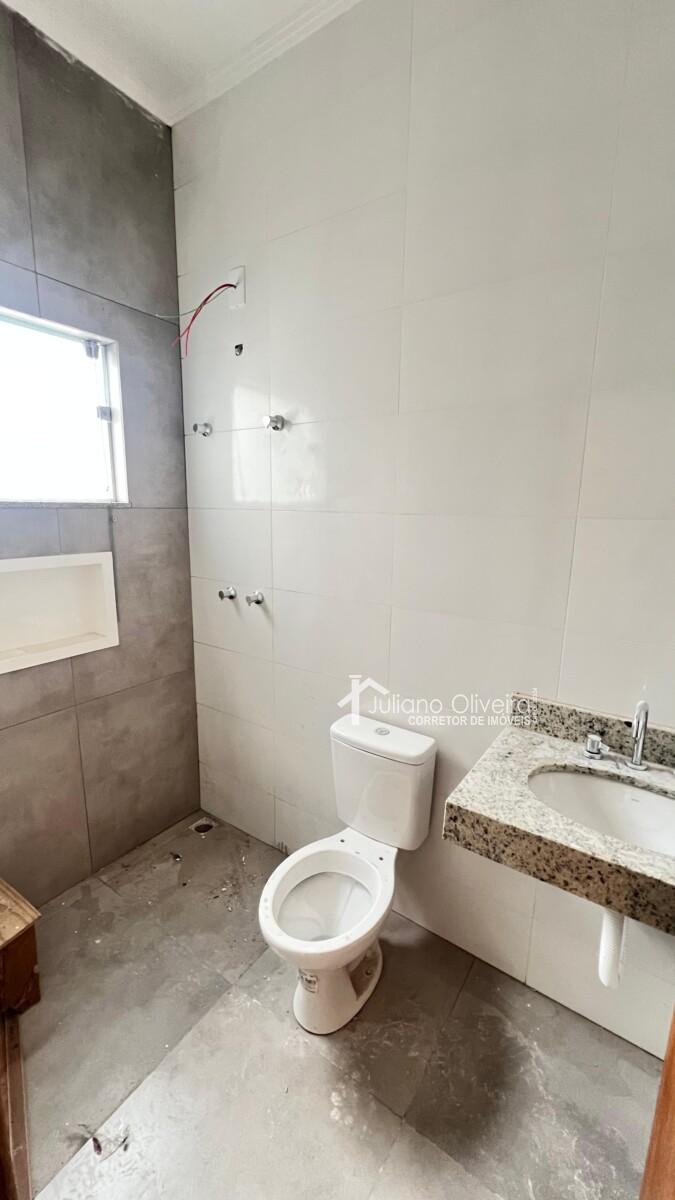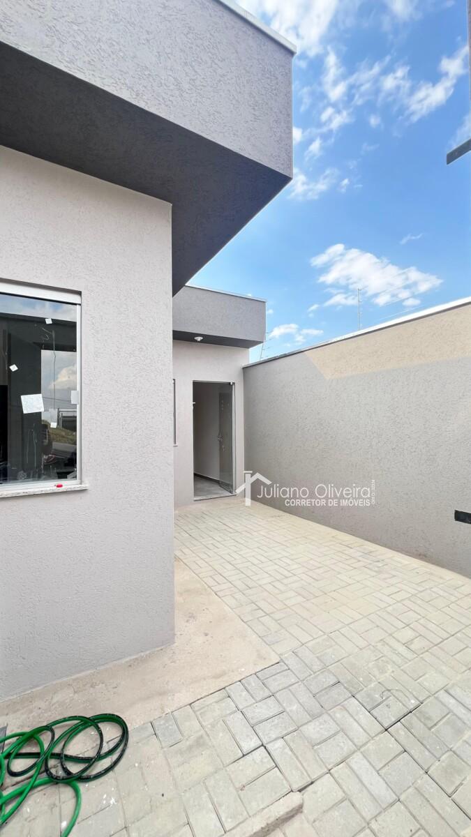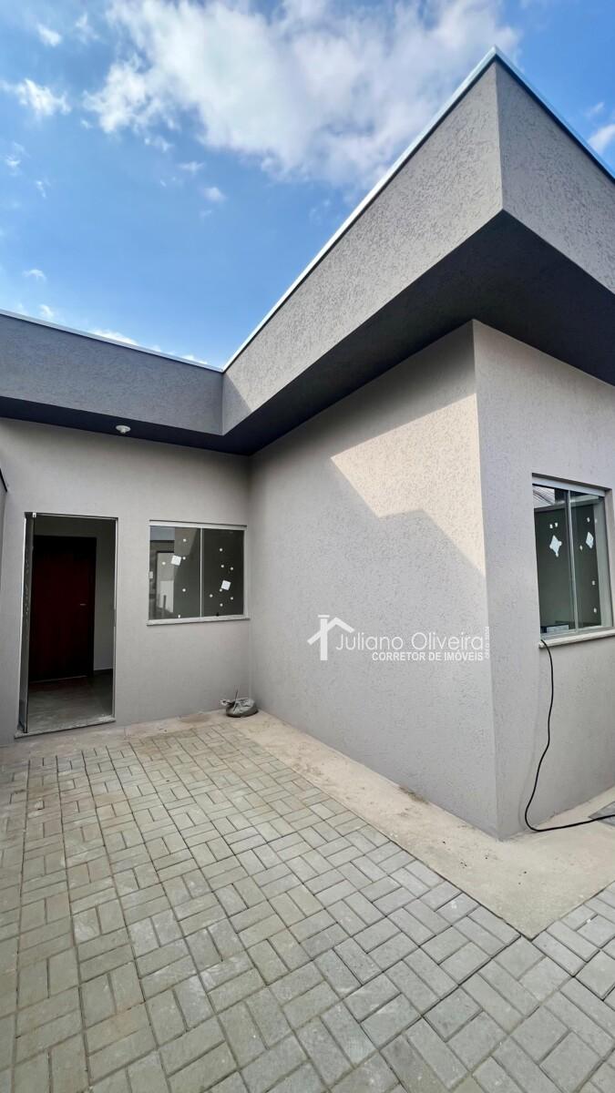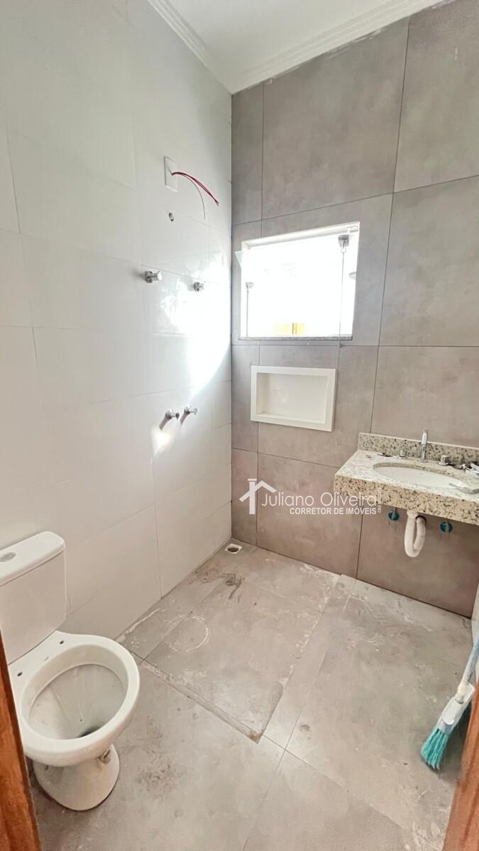 Casa com 70m² de área construída sobre o terreno de 100m², contendo: 3 quartos sendo 1 suíte, sala ampla, banheiro social, cozinha, área de serviço coberta e 1 vaga de garagem.
