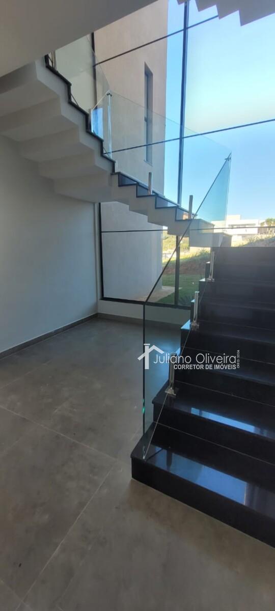 Piso térreo: Escritório com lavabo, banheiro social, cozinha, copa e sala de estar com sacada, lavanderia e 2 vagas de garagem cobertas.