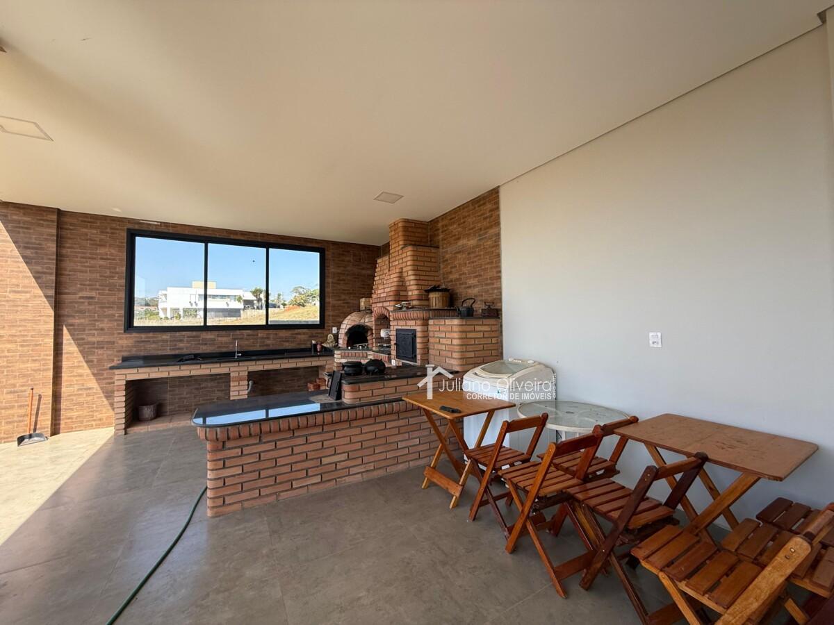 Piso inferior: 2 cômodos sendo 1 quarto, sala de música, área gourmet com fogão à lenha, forno de pizza e churrasqueira e 1 banheiro.