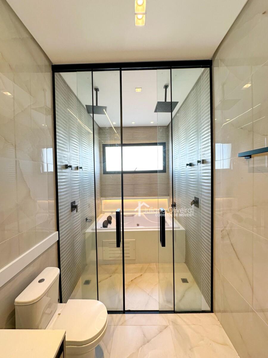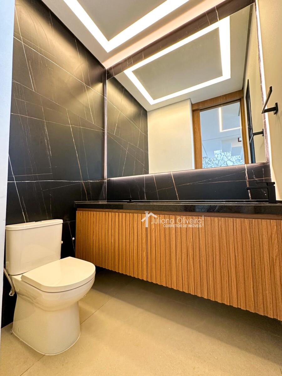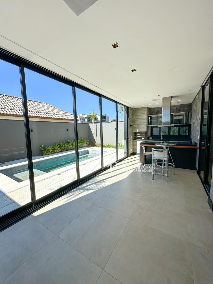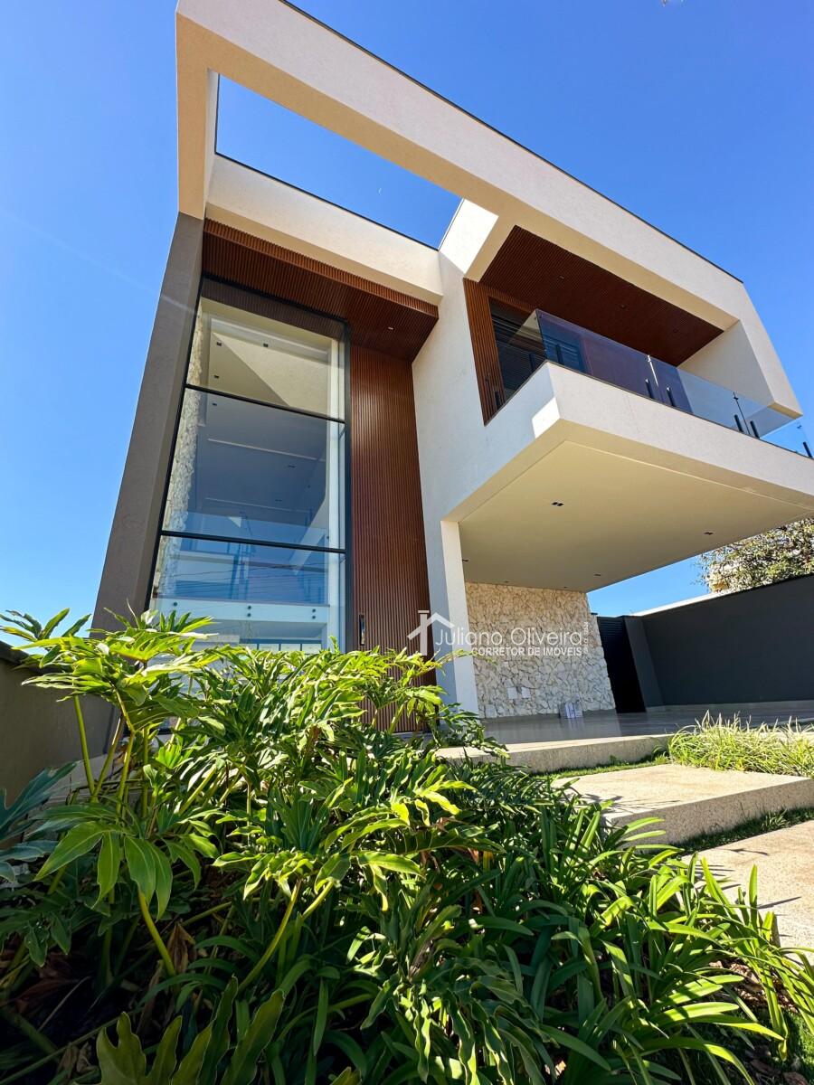 Casa com 298m² de área construída sobre o terreno de 300m², contendo: 3 suítes com closet, ampla de estar, sala de jantar, banheiro social, cozinha com planejados, área gourmet integrada com churrasqueira e revestimento cimentício, piscina e 06 vagas de garagem.