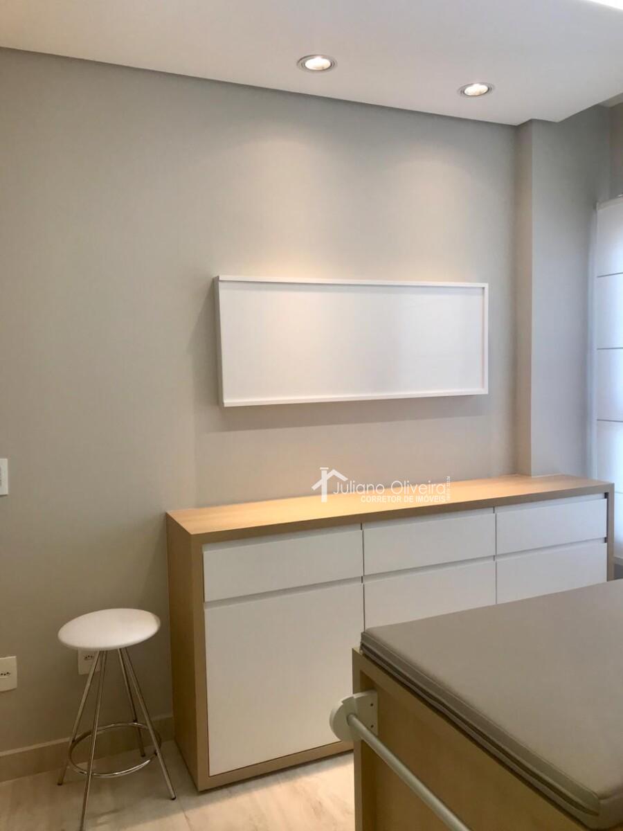 Sala com 26m² de área privativa, toda planejada, com 01 banheiro.